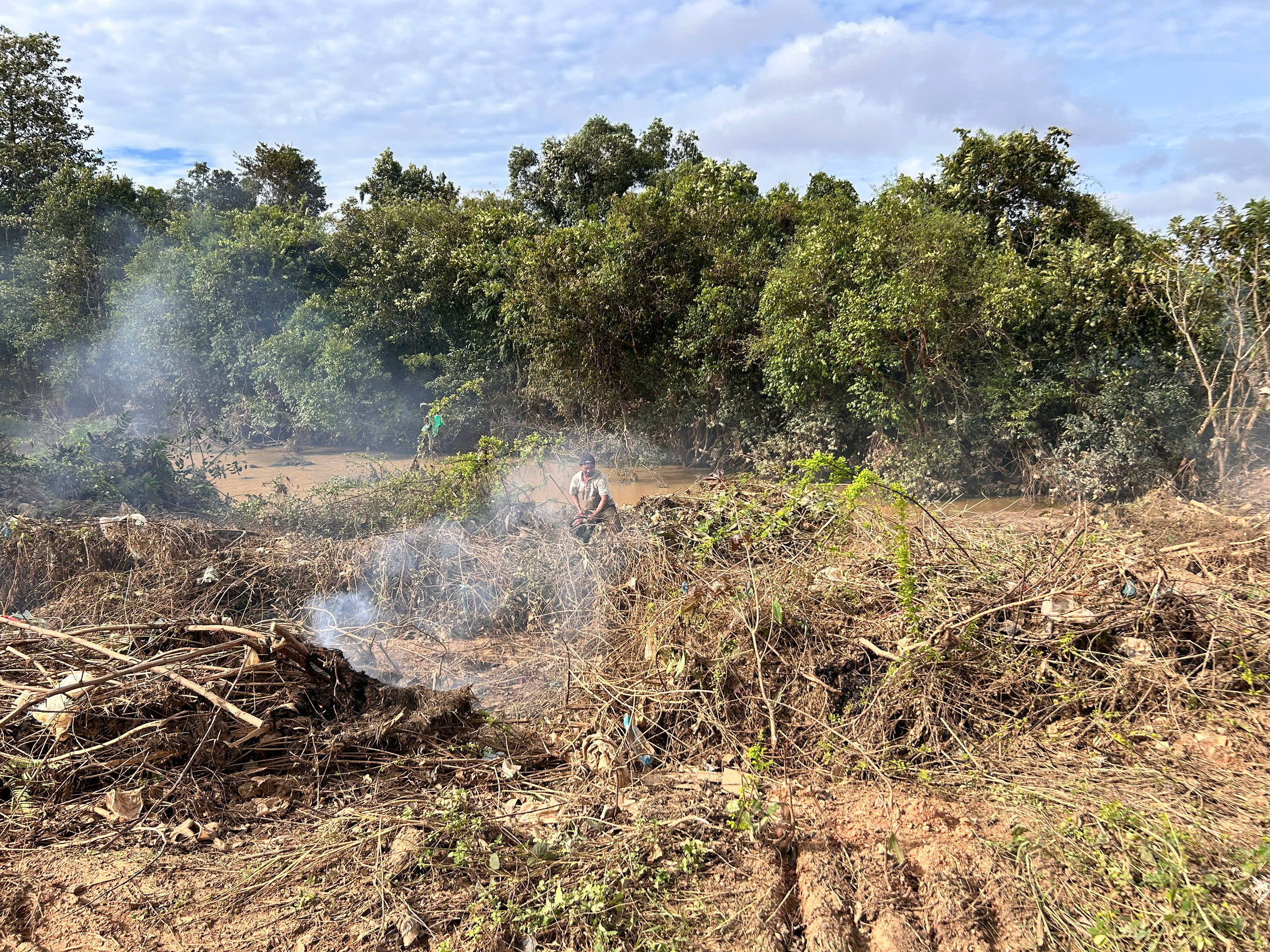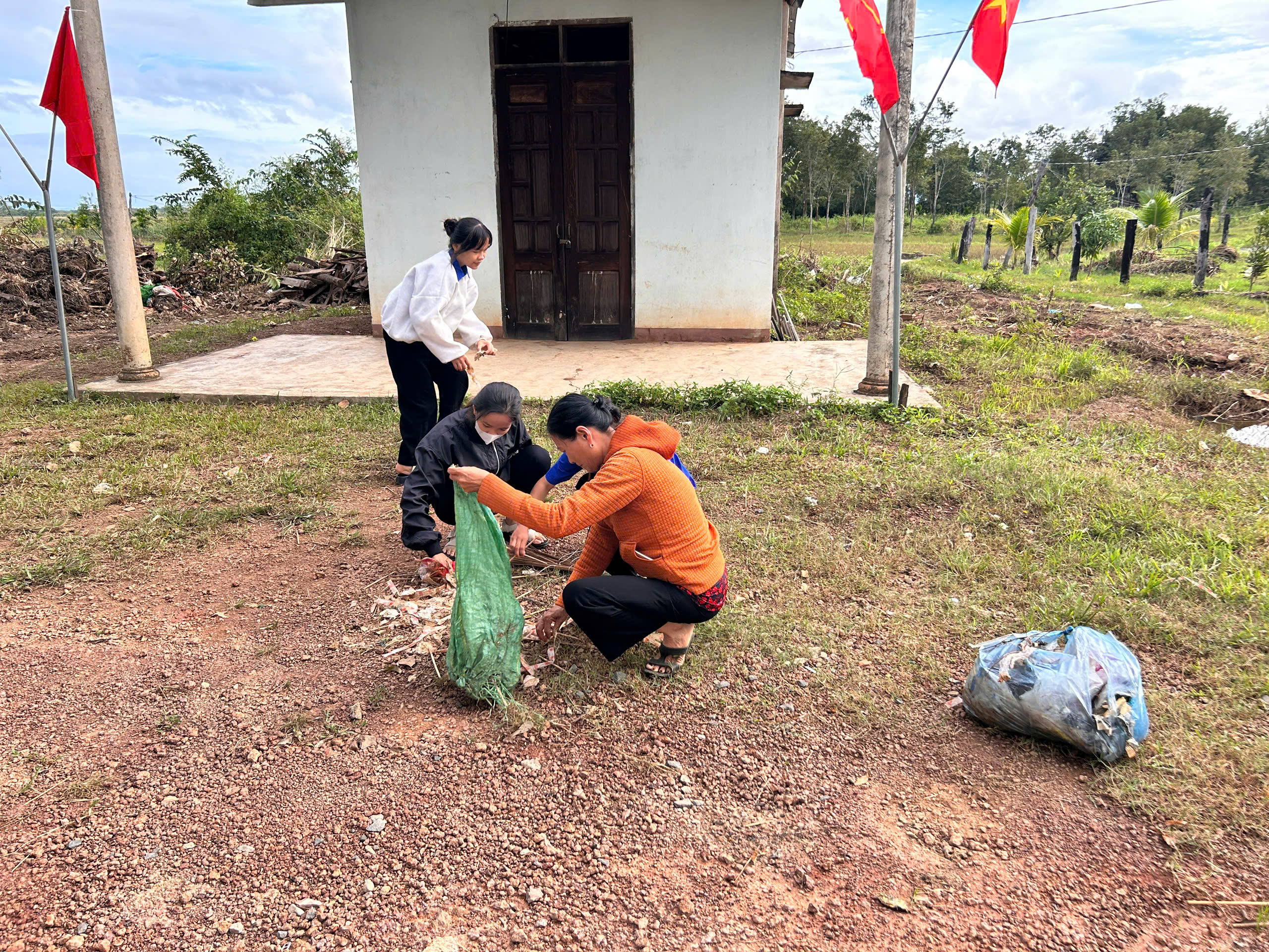 Thu gom rác tại điểm ngập lụt (Thôn 6 Ea Lê, xã Ea Súp).