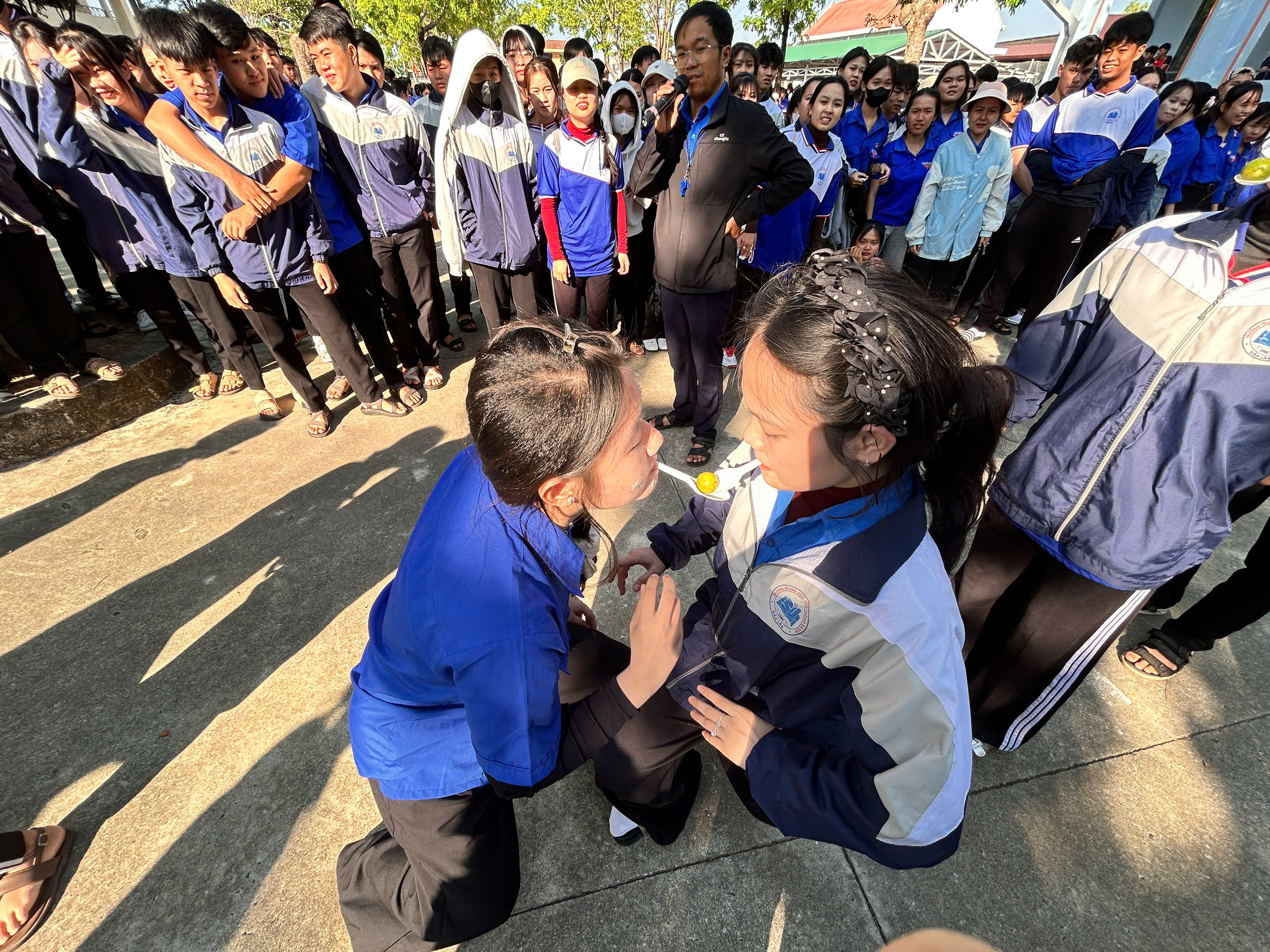 Tiếng cười giòn giã: Trò chơi truyền quả bằng thìa đầy khéo léo không chỉ mang lại niềm vui sảng khoái mà còn thắt chặt tình bạn thân thiết giữa các đoàn viên.