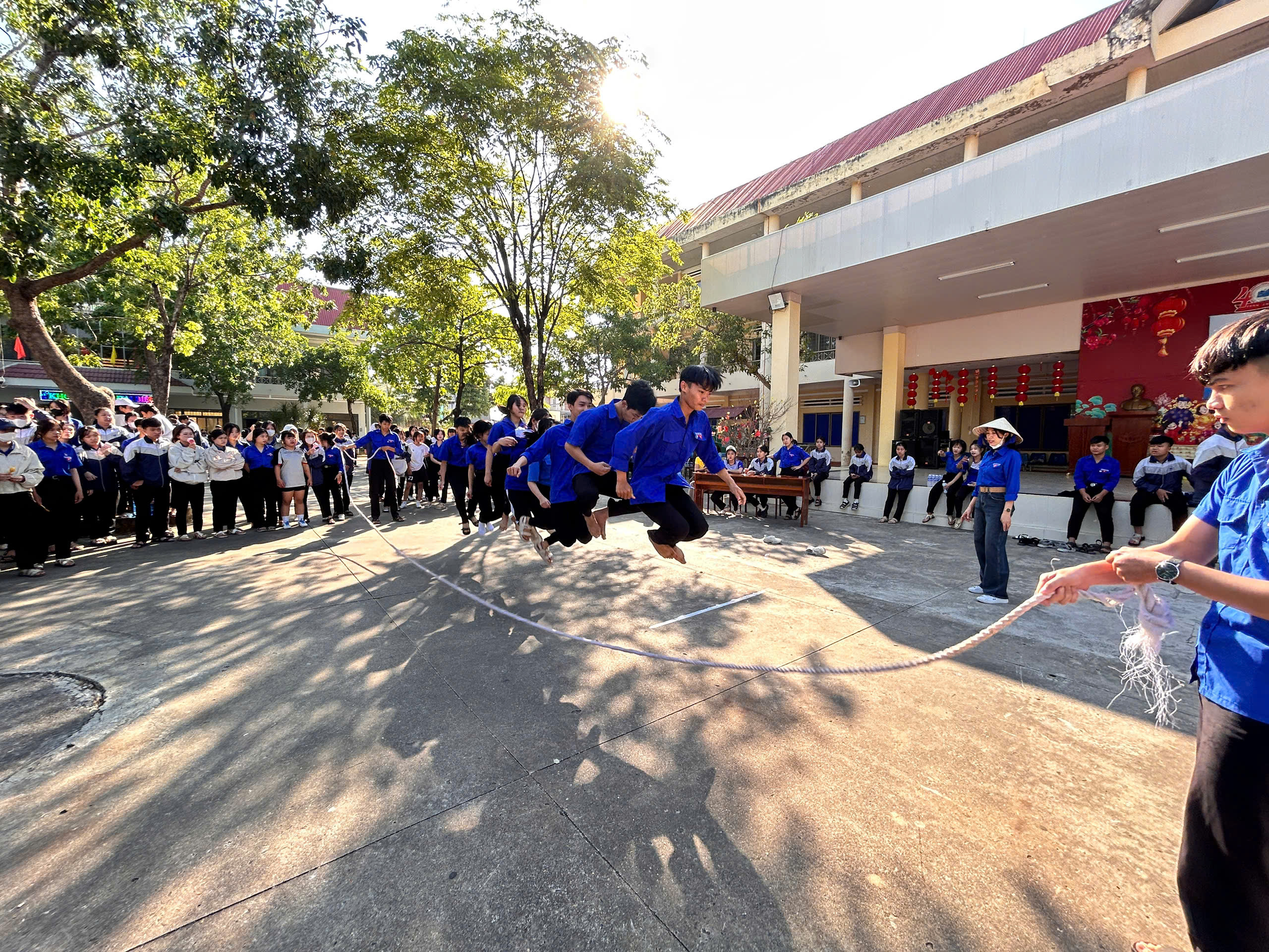 Sức mạnh tập thể: Những màn kéo co “nghẹt thở” và nhảy dây đồng đội nhịp nhàng đã minh chứng cho tinh thần “kề vai sát cánh” của các khối lớp.