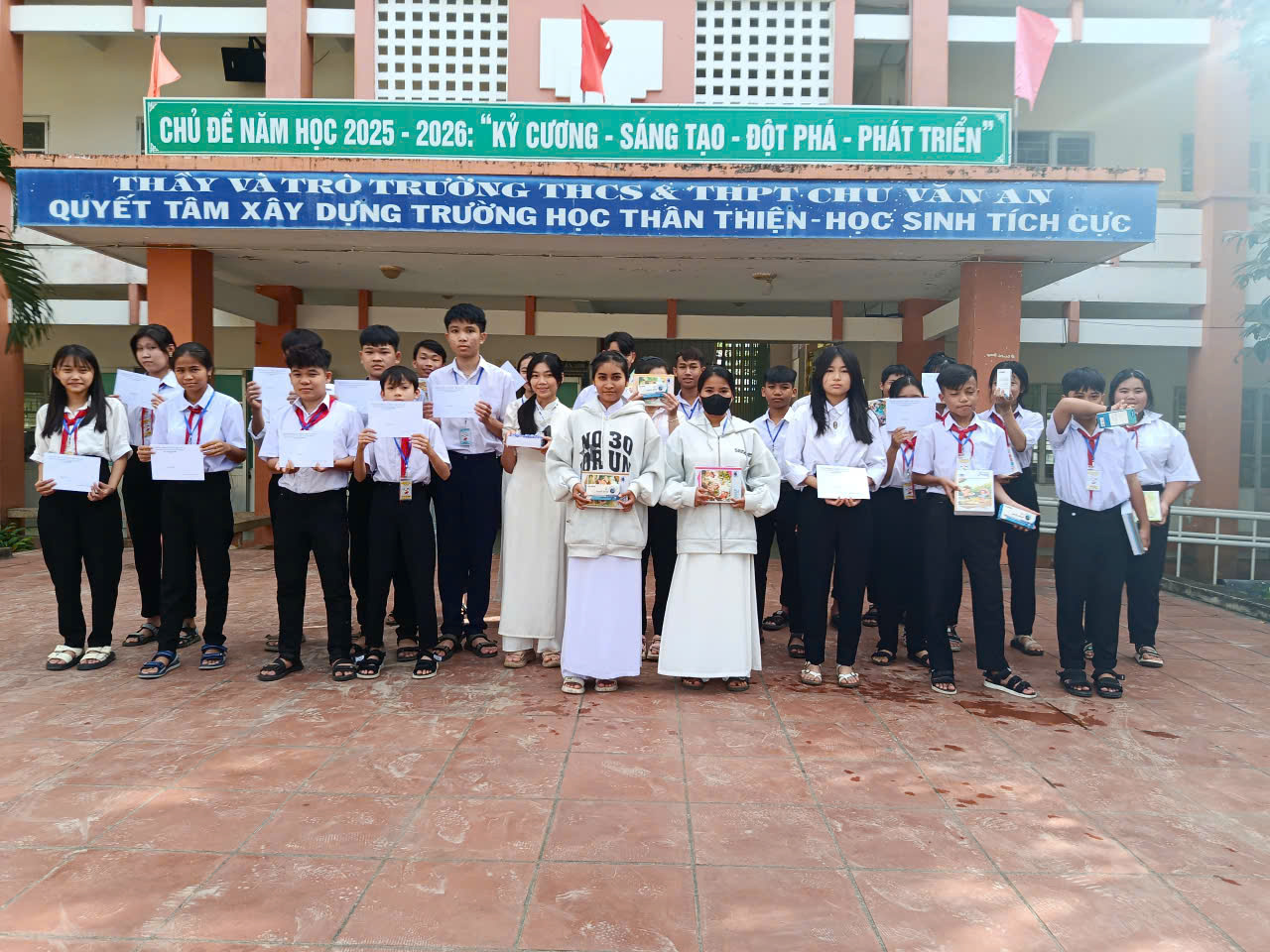 Nay, trường THCS và THPT Chu Văn An gửi thư cảm ơn đến Ban giám hiệu, giáo viên, nhân viên và học sinh trường THPT Ea Súp cùng một số hình ảnh học sinh nhận hỗ trợ để tiếp tục đến trường.